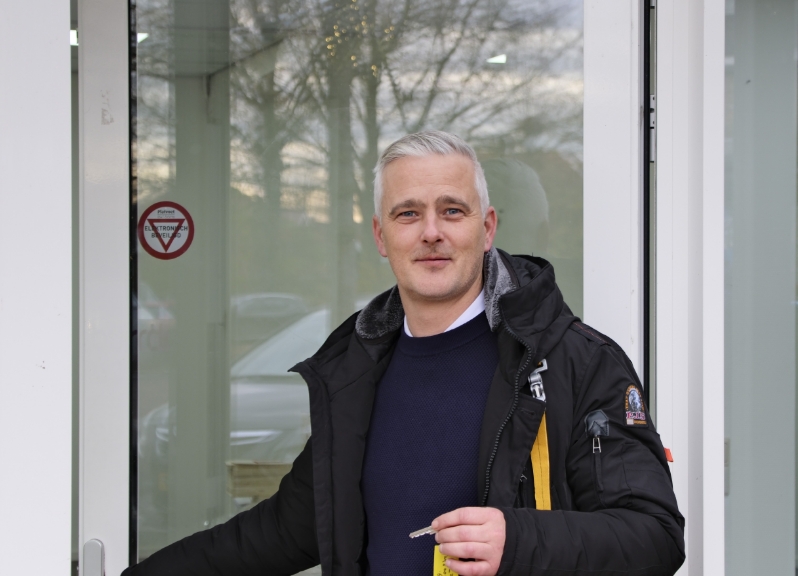 Er moet nog wel het nodige gebeuren in het voormalige pand van Julia’s Stoffen. Bjorn Oude Roelink heeft zojuist de sleutel van het pand gekregen van Bart Velthuis en Roderik Snijders van Winkelcentrum Zuid-Berghuizen BV, eigenaar van het pand. Het kwam leeg nadat Julia Olde Daalhuis met haar stoffenzaak verhuisde naar de binnenstad. Aan de locatie zal het niet liggen, vertelt Bjorn. ‘Tussen Die Grenze en Albert Heijn, wat wil je nog meer? De hele dag aanloop.’