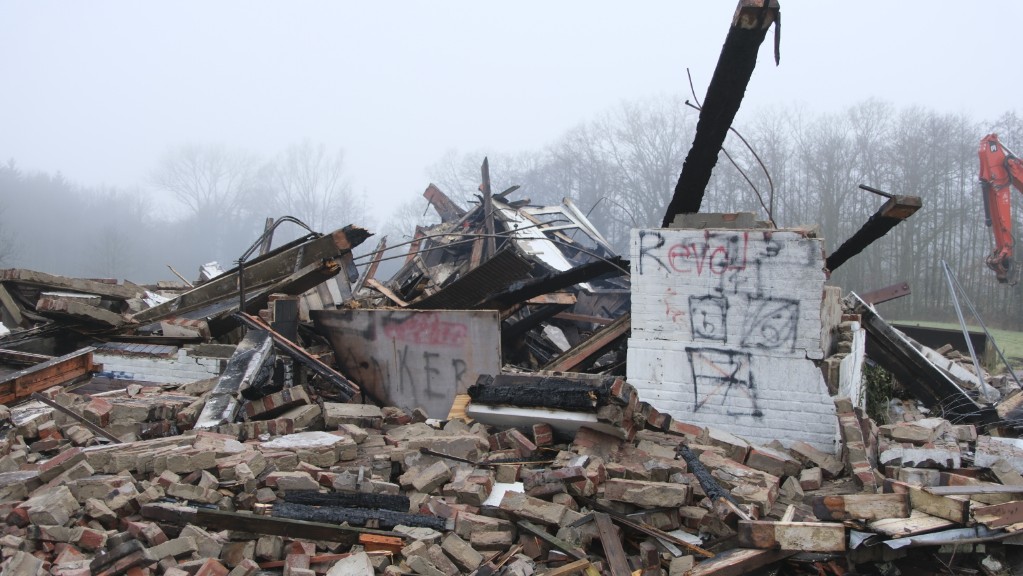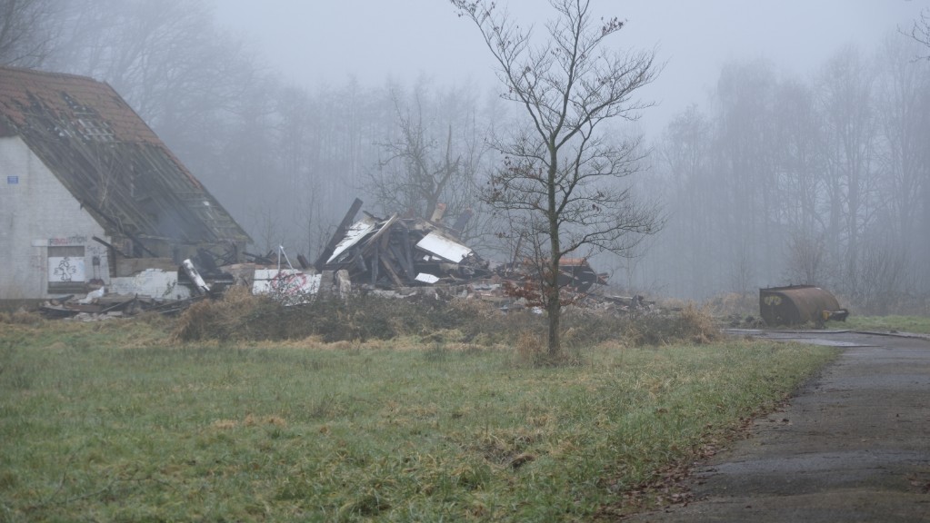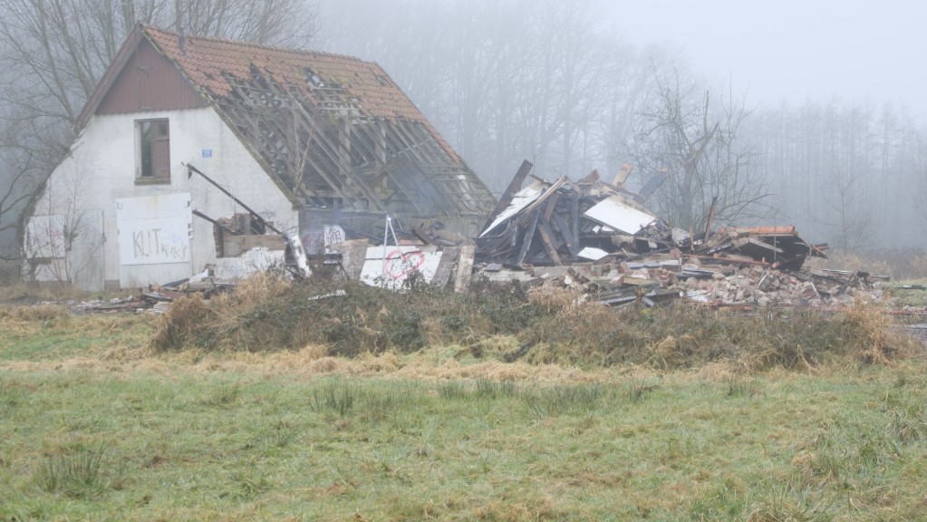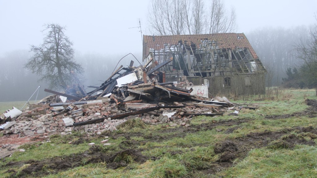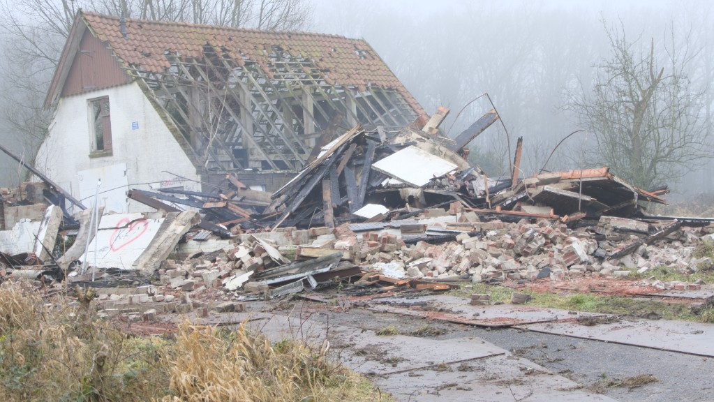 Van de ravage is zo goed als zeker op korte termijn niets meer te zien. Er was namelijk al begonnen met de sloop van het pand. Voor het zware transport is de Koppelboerweg vol gelegd met rijplaten.