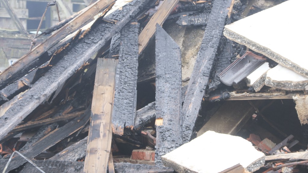 Fotograaf Hans Muijderman van wijkkrant Hallo Berghuizen begaf zich zondag bij daglicht nogmaals naar de locatie van de brand, die zaterdagavond een al lange tijd leegstaand woonhuis aan de Koppelboerweg in de as legde.