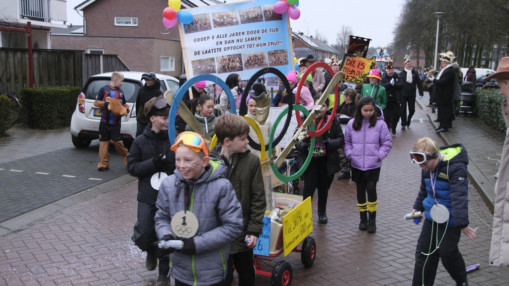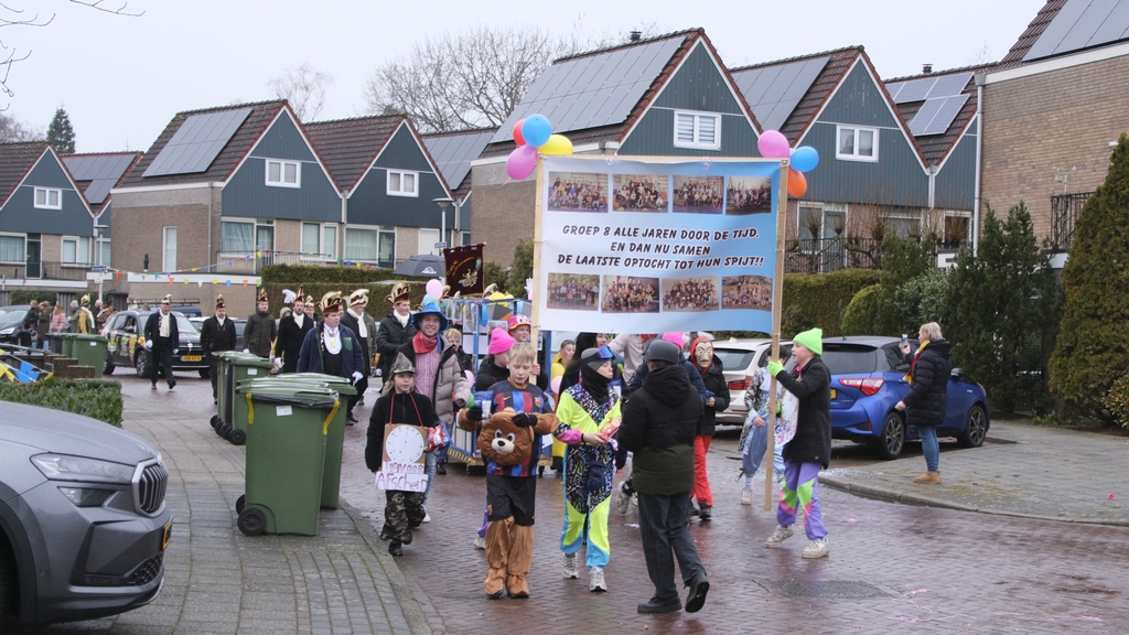 Groep 8 van basisschool De Leemstee gaat de optocht in Berghuizen missen. De kinderen lieten dat vrijdagmorgen door het meedragen van een groot spandoek maar al te duidelijk weten.
