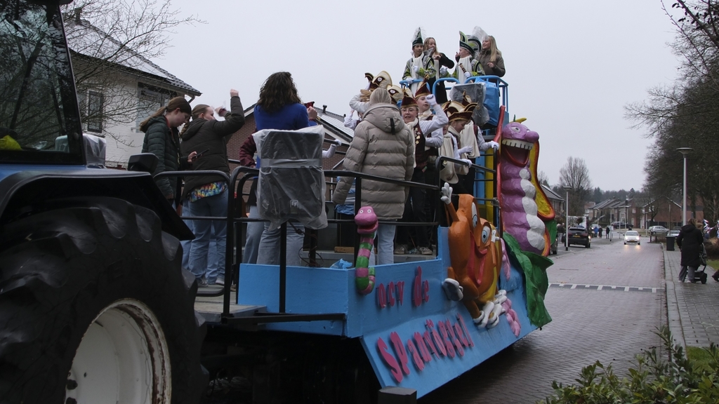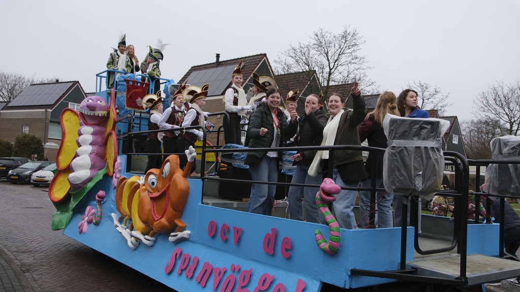 Gelijk hebben ze. Want de lange stoet met Jeugdmarkies Sepp en zijn Page Lisa hoog op de wagen met ondersteuning van de leden van O.C.V. De Spanvöggel zag er weer fantastisch uit.
