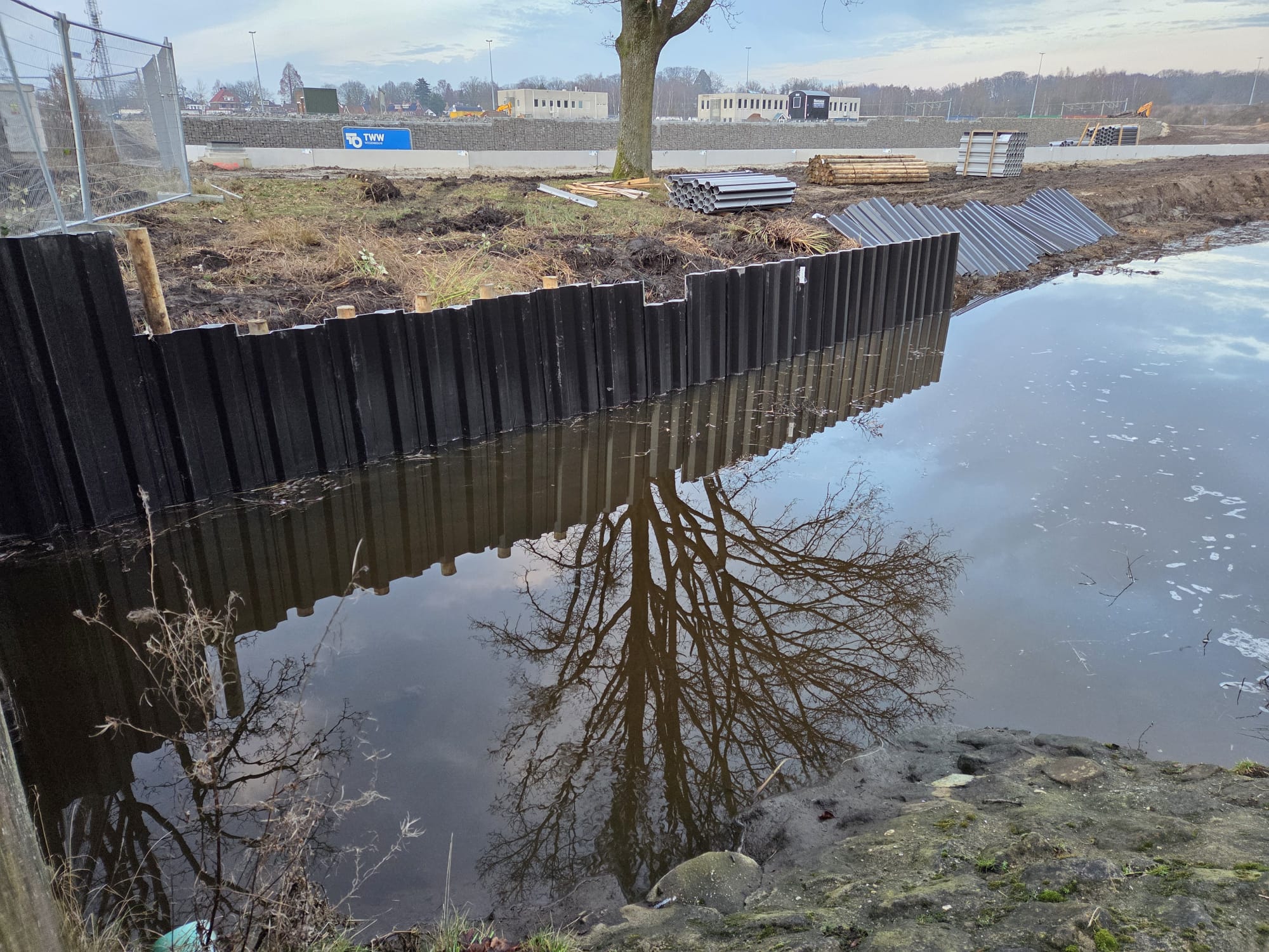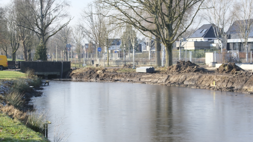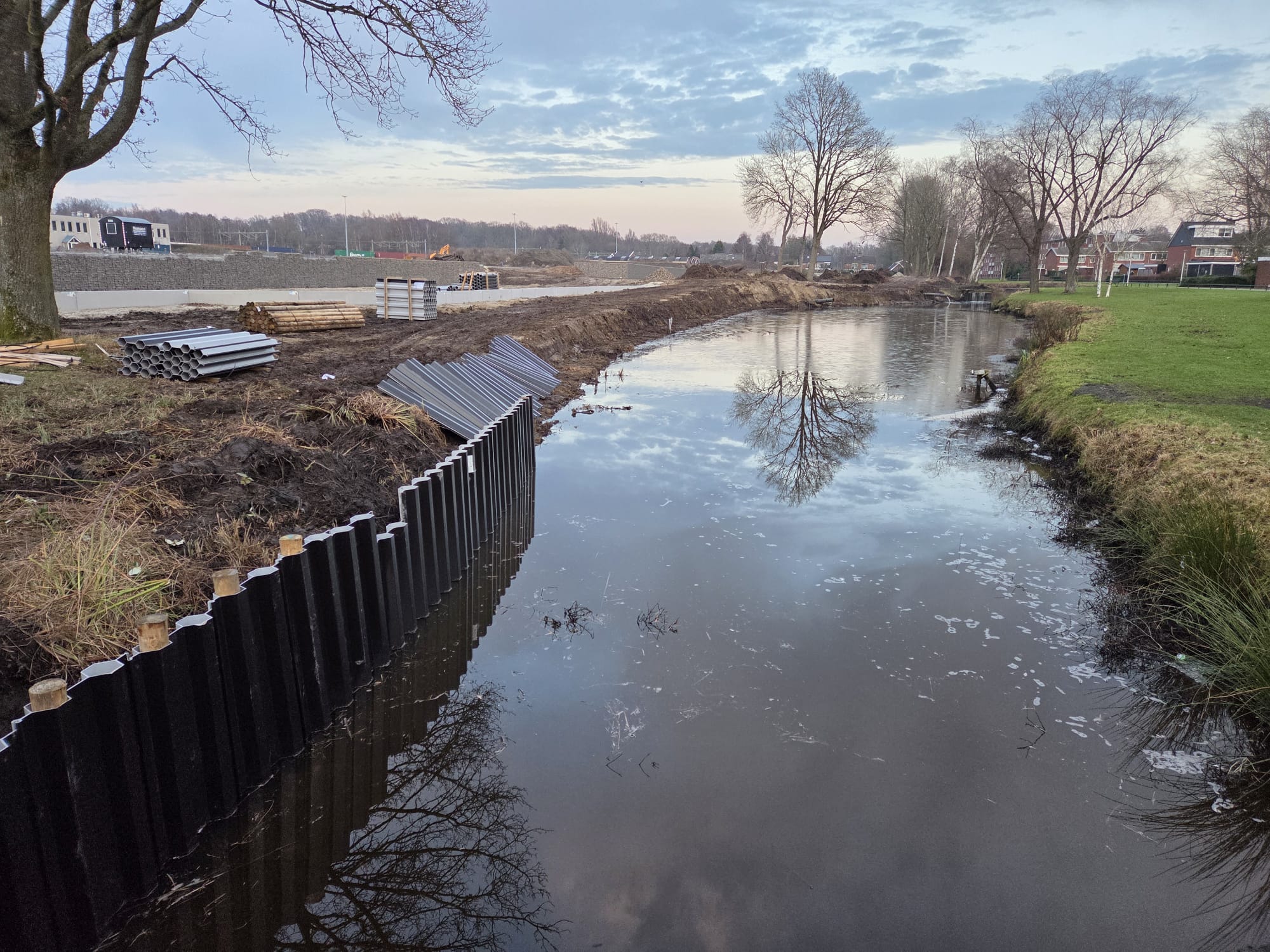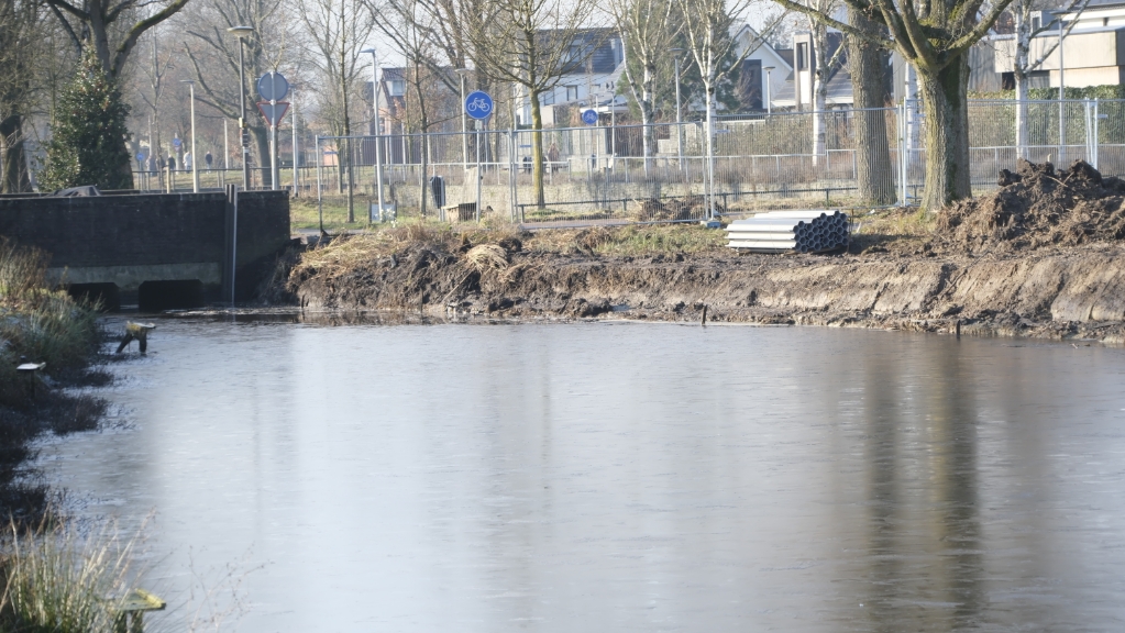 ‘We kregen vorige week al een berichtje dat de waterstand verlaagd zou worden voor het opschonen van de oever en het verwijderen van de oude beschoeiing. Daarna het plaatsen van de nieuwe beschoeiing’, vertelt OHV-voorzitter Hans Holsbeek. Dit geldt voor het beekgedeelte tussen de Helmichstraat en de Boerskottenlaan.